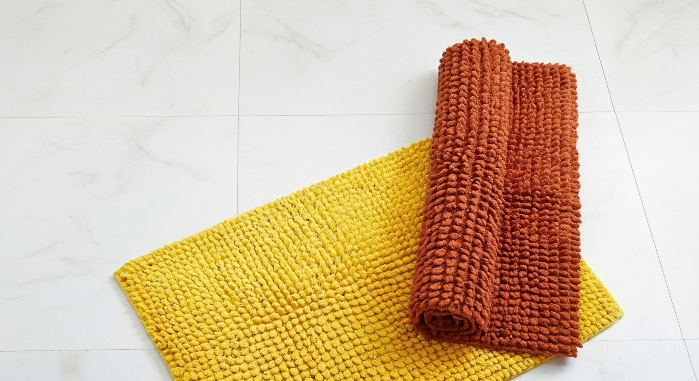 A bath mat for your bathroom floor to provide a warm non-slip surface, and to absorb small amounts of water, much like a towel.