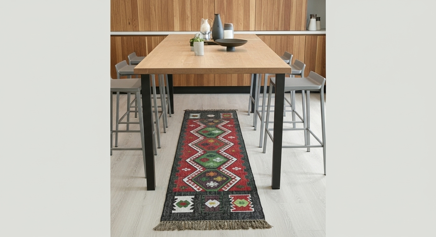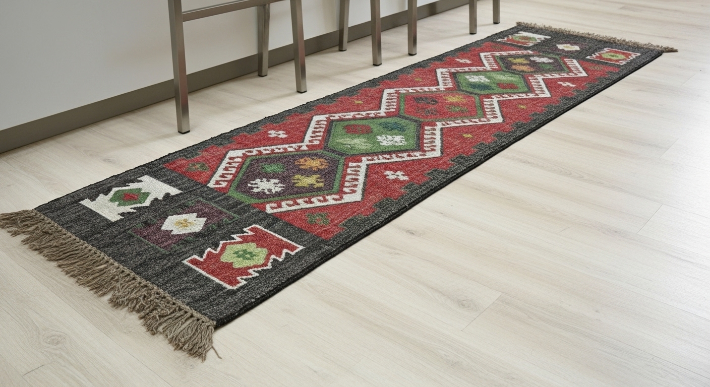 This beautiful kilim features a traditional design and is hand made using a selection of Jute and wool. It consists of a variety of different colored fabric with a fringed edging to produce a wonderful unique item. Made from jute wool, a naturally renewable fiber, for comfort and a durable pile that’s eco-friendly Beautiful practical and hard wearing, they suit a variety of rooms making them perfect for any Place! These rugs are hand woven on flat looms, they are hard wearing and versatile on softer geometric pattern in your space with the comfortable and high quality Wist Rug from Kapoor Handloom Indus. Hand woven and knotted by skilled artisans on a horizontal loom for exceptional craftsmanship and quality.