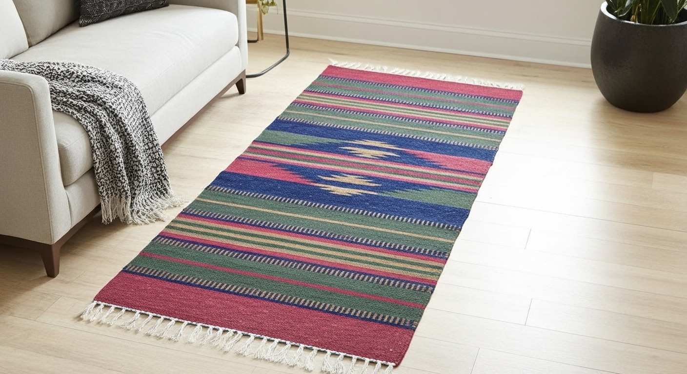 A stunningly beautiful rug! Aztec pattern on a cream background! A true classic! Perfect for any room in the house and also popular for camping and glamping! Very suitable for yurts, bell tents and tepees!