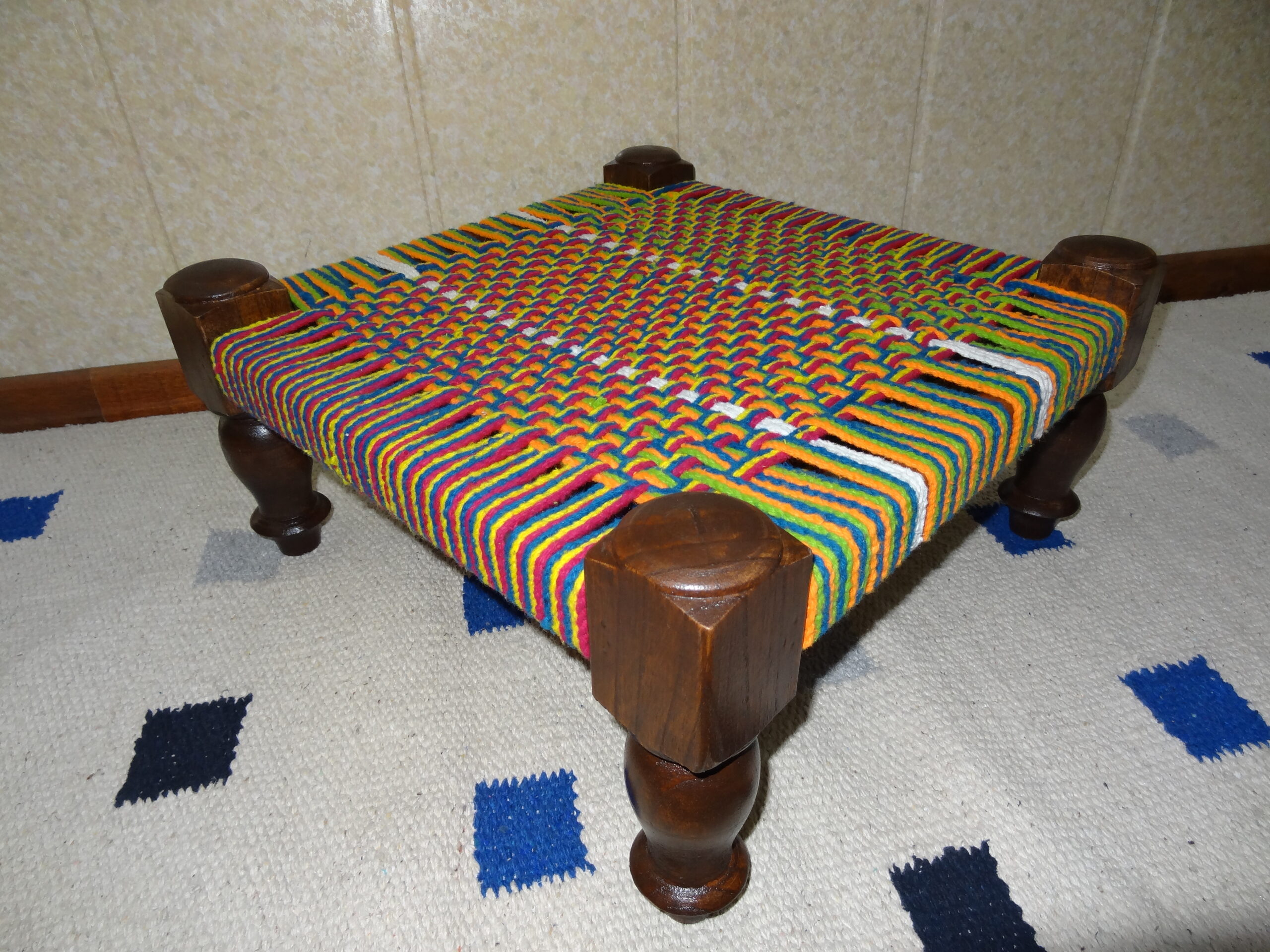Traditional Hand Made Wood & Woven Fabric Multi Footstool.