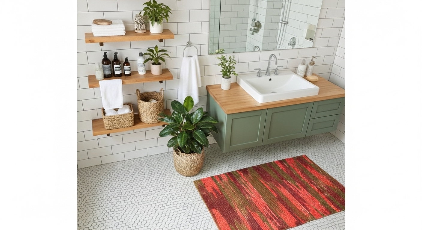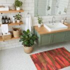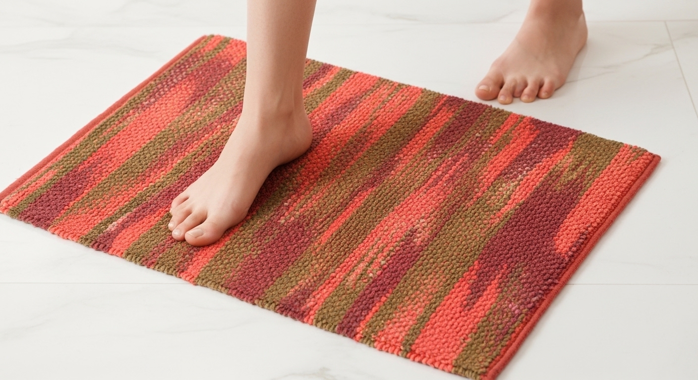 A bath mat for your bathroom floor to provide a warm non-slip surface, and to absorb small amounts of water, much like a towel.