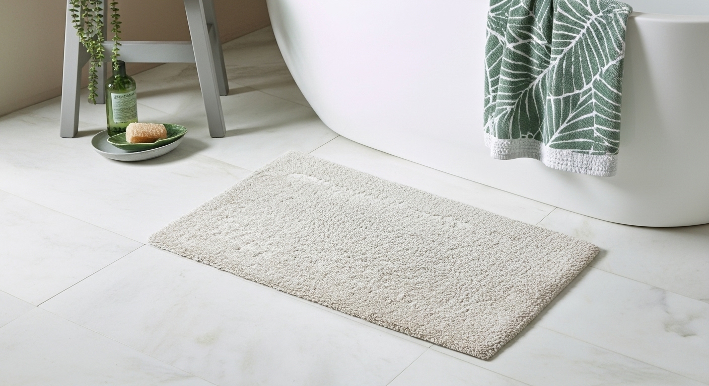 A bath mat for your bathroom floor to provide a warm non-slip surface, and to absorb small amounts of water, much like a towel.